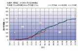 こちらは厚別区。対前年度比で累積積雪量を比較しますと、当店の粗利益のように減っています。赤は当年度。